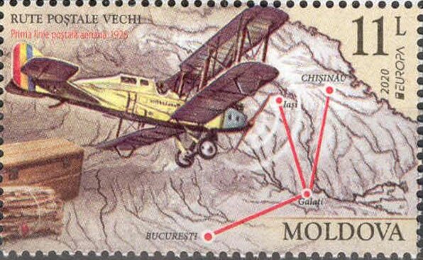 11 Leu – Aircraft and Map. Route from Bucharest (Romania) to Chisinau (Moldova)