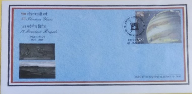 APS issued a Cover on 01 Jan 2020 to commemorate the Golden Jubilee of 73 Mountain Brigade. The Units of this Brigade took part in Battle of Gangasagar in 1971 and Lance Naik Albert Ekka of 14th Battalion Brigade of Guards was awarded the Param Vir Chakra.