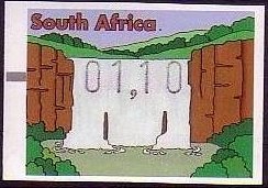 South Africa issued its first ATM Stamp or Label on 14 Aug 1986. It had an automatic number P 001 and was available from Sunny Side Post Office Pretoria. 34 ATMs were installed and numbered P 001 to P 034. It was a FE 271 model.