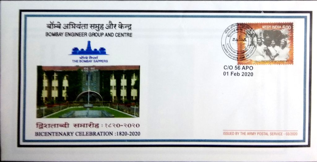 APS issued a Cover on 01 Feb 2020 to commemorate the Bicentenary Bombay Engineer Group & Centre. Originally raised as Pioneer Lascars in 1777 in Bombay. It has to its credit all the three Highest Gallantry Awards Victoria Cross , Param Vir Chakra and Ashoka Chakra. Seven Sportsmen from Bombay Sappers have been awarded Arjuna Awards. Four Bombay Sappers sailed on “Trishna”