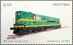 After introducing diesel engines, there was a need for procuring engines for pulling lighter freight and passenger trains as well as for heavy shunting. The first locomotive was delivered to Railway Transport Company Skopje in June of 1961. Railway Transport Company Zagreb received 33 locomotives manufactured between 1962 and 1965, while the remaining locomotives were distributed to other subsidiaries of Yugoslav Railways by 1972. Croatian Railways took over all 33 locomotives from Railway Transport Company Zagreb, to which it assigned the numerical code HŽ 2041. A 6.50 Croatian Kuna stamp was issued . Print Quantity 300,000.