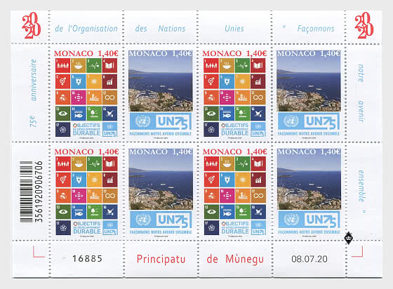 Sheetlet of Monaco 2020- SDG Goals – UNO @75