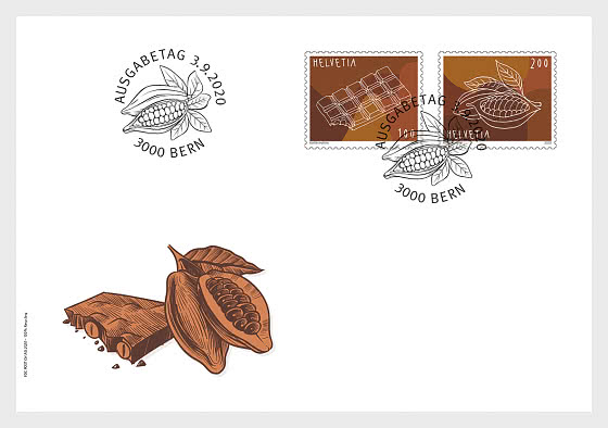 Chocolate is an important symbol of Switzerland. However, the journey from the fruit of the cacao tree to melt-in-the-mouth temptation is a long one. This re nement process is being recognized in two special stamps.