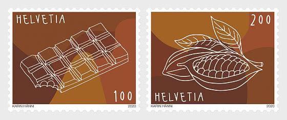Chocolate is an important symbol of Switzerland. However, the journey from the fruit of the cacao tree to melt-in-the-mouth temptation is a long one. This re nement process is being recognized in two special stamps.