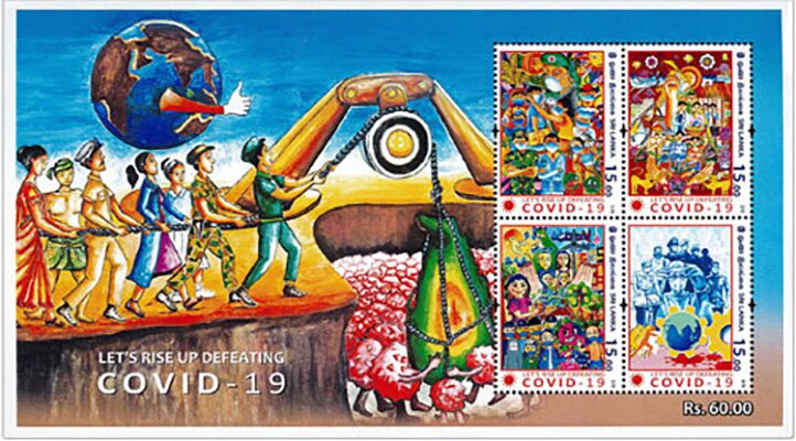 Sri Lanka issued a Miniature Sheet on the theme Covid 19- Rise up to Fight the Virus. Each Miniature Sheet has four stamps of Rupees 15 each (Sri Lankan Rupees). Print Quantity 25,000.