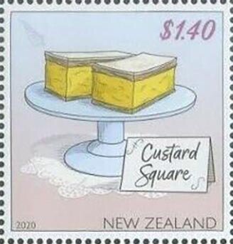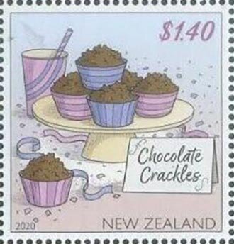 Custard Squares ,Chocolate Crackles, Ginger Biscuits & Melting Moments on Stamps – New Zealand 2020.