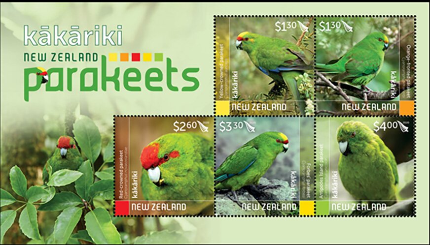 Parakeets on Stamps -New Zealand 2020 -Miniature Sheet.
