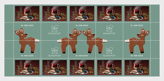 Aland Post issued two stamps on 23 Oct 2020 to Celebrate Christmas . Alexander Linden has tastefully illustrated Glogg the best drink of Aland Christmas and traditional Knack Toffee