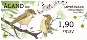 Possibly the First Stamps of 2021 are the ATM labels of Aland on Songbirds. ATM on Willow Warbler has been released on 02 Jan 2021.