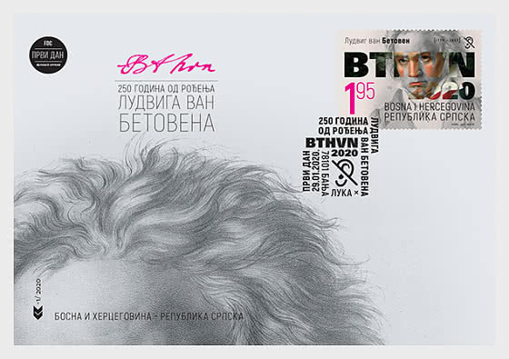 Bosnia & Herzegovina Republic of Srpska Issued a stamp to mark 250th Birth Anniversary of Ludwig Van Beethoven on 29 Jan 2020. It was in 1.95 KM denomination.