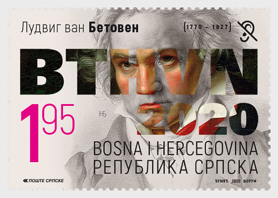 Bosnia & Herzegovina Republic of Srpska Issued a stamp to mark 250th Birth Anniversary of Ludwig Van Beethoven on 29 Jan 2020. It was in 1.95 KM denomination.