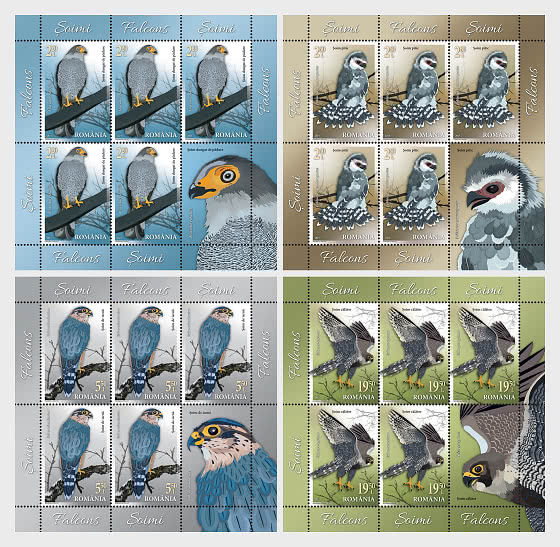 The Peregrine falcon (Falco peregrinus) is illustrated on the stamp with the face value of Lei 19.50 and on the First Day Cover of the issue. It is a large species (up to 120 cm in wingspan), widespread throughout the world.