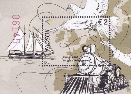 Kosovo issued a Two EURO Miniature Sheet on EUROPA 2020 theme- Ancient Postal routes. Date of issue 01 Jun 2020. It features means of delivering mail. Two stamps were also issued on this theme.