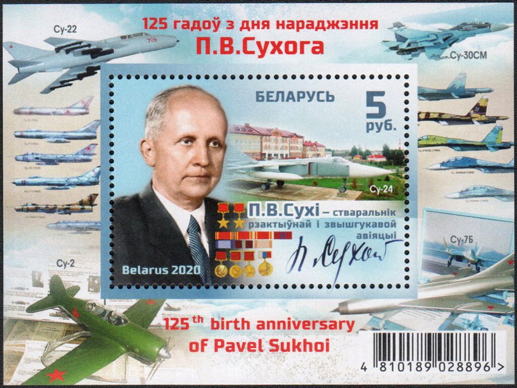 Stamps on Pavel Osipovich Sukhoi – Belarus 2020.