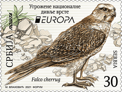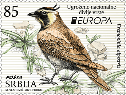 Serbia issued a set of Two stamps on Endangered National Wildlife under the EUROPA 2021 theme . The Stamps were issued on 12 May 2021 and Feature Saker Falcon and Shore Lark.