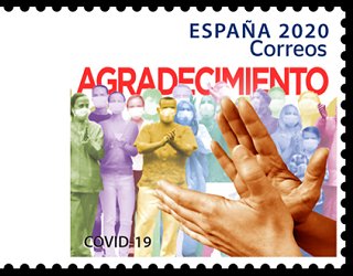 On 01 Oct 2020 Spain issued a Souvenir sheet and an ATM stamp on Fight Against COVID 19. The Theme of ATM stamp was “Gratitude” or “Agradecimiento”. It features agroup of People clapping something that was repeated daily throughout the country for about two months, as a way of thanking all the heroes of this pandemic. the stamp was designed by Juan Antonio Gonzalez. The self-adhesive labels were manufactured by Walsall/Cartor Security Printers.