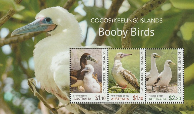 Cocos (Keeling ) Islands issued a Miniature Sheet with three stamps on Booby Birds on 12 May 2020. Booby birds are seabirds.