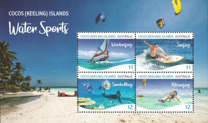 Cocos (Keeling ) Islands issued a Miniature Sheet with four stamps on Water Sports on 28 May 2019.