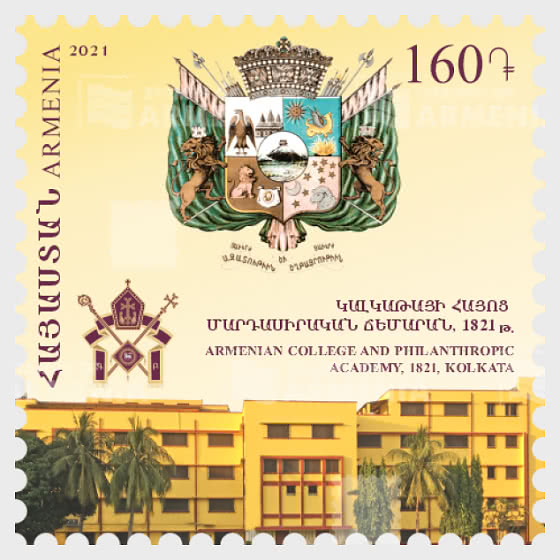 On April 26th, 2021, one postage stamp dedicated to the theme “Armenian cultural heritage in the Asian region. 200th anniversary of the Armenian College and Philanthropic Academy of Kolkata” has been put into circulation.