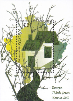 The Theme for Europa stamps in 2016 was -Ecology in Europe -‘Think Green’. It was the common design which also celebrated the 60th Anniversary of EUROPA Stamps. Kosovo issued two stamps on this theme