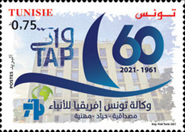 Tunisia issued a 0.75 Dinar Stamp on the Tunisian News Agency TAP (Tunis Afrique Presse) on 12 Jan 2021 . It was released to mark 60th Anniversary of the News Agency which was founded on 01 Jan 1961. based in Tunis it has Corps of 300 agents including Journalists and sends about 250 dispatches per day in Arabic, french & English.