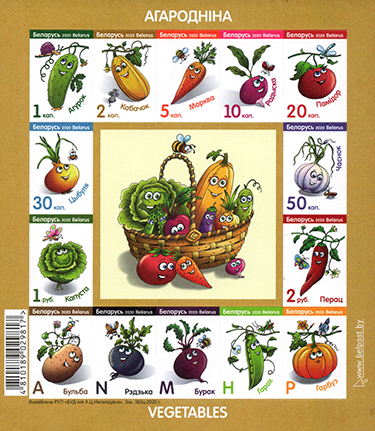 Belarus issued a Miniature Sheet containing 14 Definitive Stamps on Vegetables on 01 Jul 2020. The Print Run of Miniature Sheet was 10,000 and was issued at 11.85 Br.