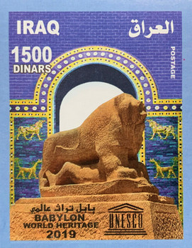 Iraq issue a set of stamps and a Miniature sheet on Babylon which is a UNESCO World Heritage site. A Miniature Sheet of 1500 Dinars was issued on 22 Dec 2019. It Features the Ishtar gate and Lion statue.