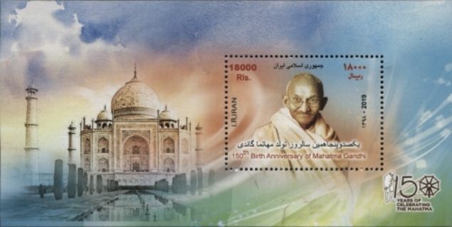 Iran issued a 18000 Riyals Miniature Sheet to Commemorate 150th Birth Anniversary of Mahatma Gandhi on 14 Jun 2019. The sheet features Taj Mahal