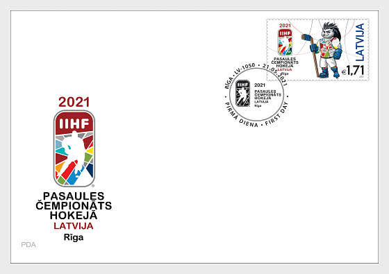 The hockey championship stamp has a print run of 50,000 copies and its face value is €1.71, which corresponds to the postage of letter-post items in the weight class from 101 to 500 grams within Latvia. The release of the stamp is accompanied by the issue of a special cover with a print run of 1,000 copies. The philatelic releases have been designed by the artist Ģirts Grīva and they feature Spiky the Hedgehog, the official mascot of this year’s championship, and the official logo of the championship