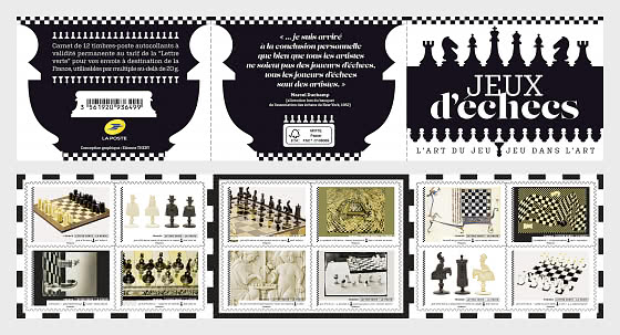 “Booklet of 12 self-adhesive postage stamps entitled” “CHESS GAMES – THE ART OF THE GAME – GAME IN THE ART” “intended for enthusiasts of this game, art lovers and everyone. this notebook are illustrated with works of art and works of art from various periods.