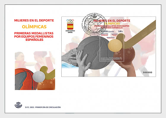 With a foil stamp that collects details of three types of balls, the bronze handball, the silver basketball and the hockey in gold, Correos (Spanish Postal Service) pays tribute to the first women who achieved the first Olympic team medals, in those sports in addition to water polo.