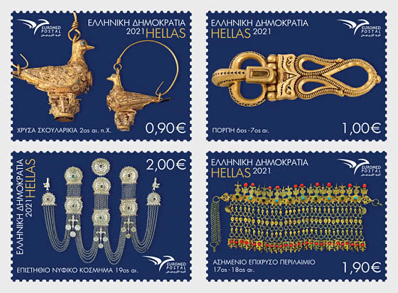 Greece has issued a set of Four stamps on 13 Jul 2021 on Handcrafted Jewellery In The Mediterranean. A Booklet has also been issued and listed. Two First Day Covers are listed.