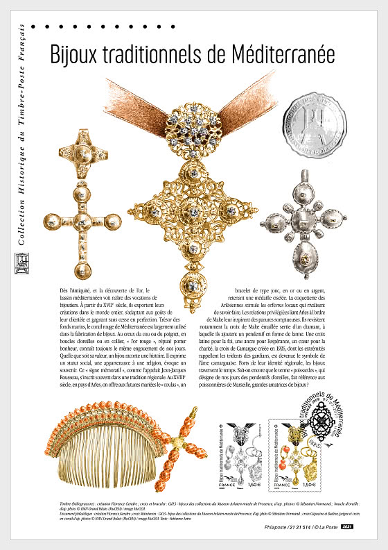 The Euromed Postal stamp project is a joint commitment, consisting of the annual issue of a stamp on the same theme. In 2021, traditional jewels from the Mediterranean.