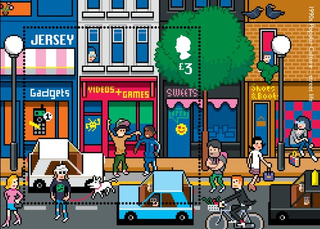 Jersey issued a Set of Six stamps , One souvenir Sheet and a Miniature Sheet on Popular Culture & Nostalgia of 90s.