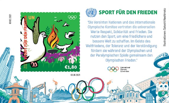 UN Vienna issued a set of three stamps in Se-tenant strip on 23 Jul 2021 to commemorate #2020Tokyo Olympics. Each stamp is 0.85 Euro and thre are eight stamps in a Miniature sheet with Print run of 27,000.