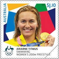 Australia Traditionally issues stamps on its Medallists in Olympics . On 27th jul 2021 Australia issued a $1.10 stamp to commemorate the Gold Medal Winning icon Ariarne Titmus who won Gold in Women’s 200m Freestyle swimming dethroning Katie Ledecky. Titmus broke the Olympic Record by clocking 1min 53.50 secs.