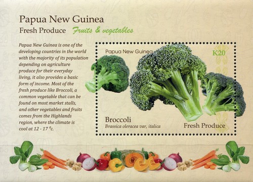 On 26th Sep 2019 Papau New Guinea issued a K20 Miniature sheet with one stamp featuring Broccoli.