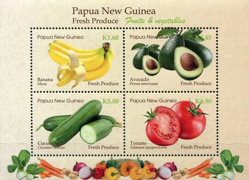 On 26th Sep 2019 Papua New Guinea issued a K20 Miniature sheet with one stamp featuring Broccoli. It also issued a Miniature sheet containing four stamps on Fruits and Vegetables.
