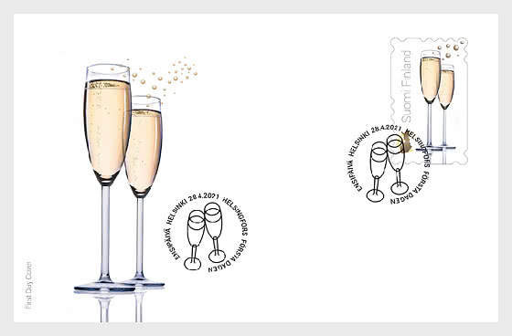In April, Posti will also issue the Day of Celebration stamp that is suitable for many kinds of congratulatory messages. The stamp will also celebrate Klaus Welp’s long career as a stamp designer, as it is the 100th stamp designed by Welp. The stamps designed by Klaus Welp, who is known as a versatile graphic designer and photographer, have featured subjects such as well-known Finnish musicians, Mikael Granlund’s famous airhook goal, saunas and Tove Jansson. Welp also designed the Wilderness Bridge stamp, which was voted the most beautiful stamp in Finland and took second place in the EUROPA stamps competition in 2018. Champagne Glasses