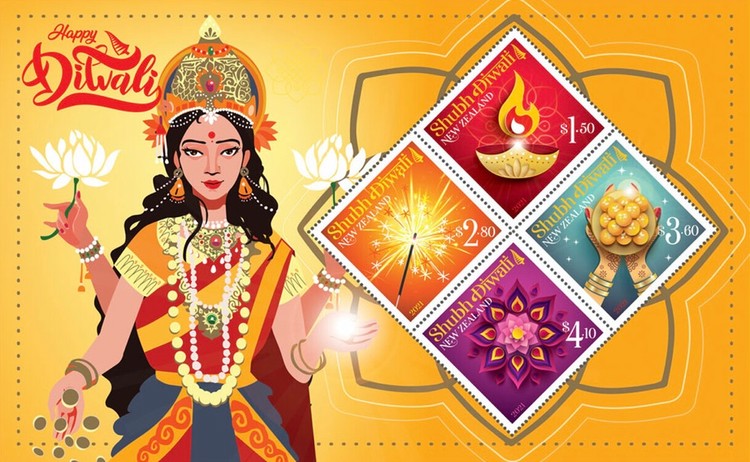New Zealand issued a miniature sheet containing four stamps to commemorate Festival of Lights DIWALI on 07 October 2021.