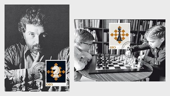 The “Knight” (face value: CHF 0.85) also serves as the motif for one of the two special stamps now being issued to mark the federation’s 50th anniversary. The second stamp shows the “King” (face value: CHF 1.80). The chess stamps, issued for the first time in Philately Liechtenstein’s history, are in white, black and gold, embellished with gold foil embossing and the high relief embossing of the individual figures.