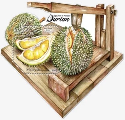 Malaysia issued a miniature sheet on Durian , King of Fruits denomination Five Ringget . It was issued on 19 Aug 2021. Over 100 varieties of Durian are found in Malaysia.