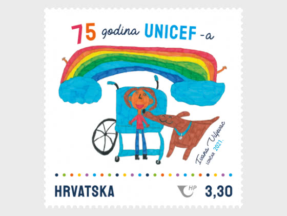 The Croatian Post issued the stamp in collaboration with UNICEF to honor the 75th anniversary of its foundation.