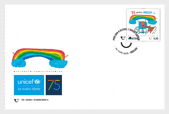 The Croatian Post issued the stamp in collaboration with UNICEF to honor the 75th anniversary of its foundation.