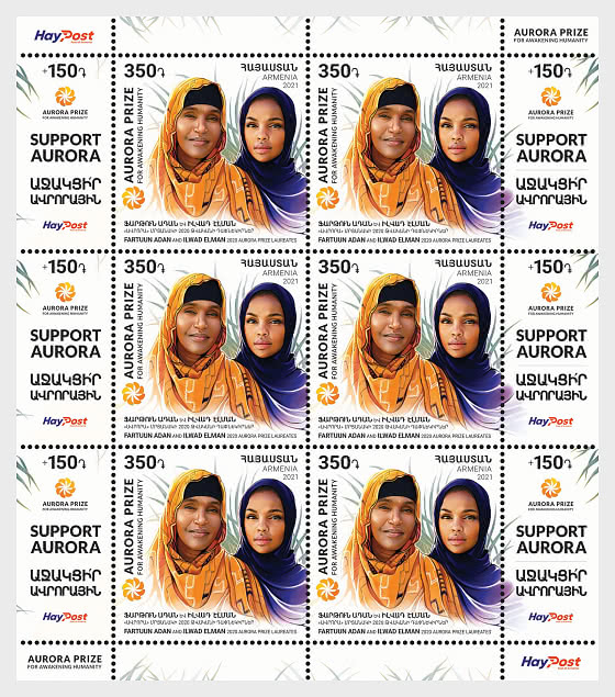 On December 9th, 2021, a postage stamp dedicated to the theme “Aurora Humanitarian Initiative. Laureates of “Aurora” Prize. Fartuun Adan and Ilwad Elman” has been cancelled and put into circulation.