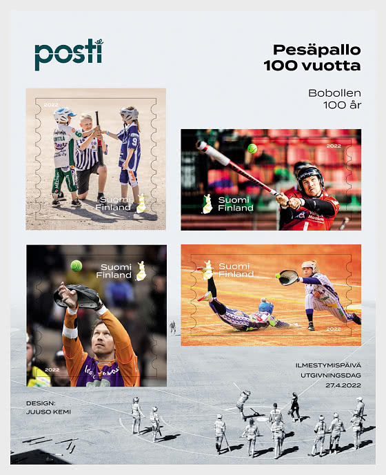 “We wanted to capture the high points of a pesäpallo game on the stamps, while, at the same time, highlighting the equality of pesäpallo through the selected photos. The stamps feature men, women and children playing the game. Since its invention, “pesis” has been a suitable sport for everyone, regardless of age and gender,” Kemi says.