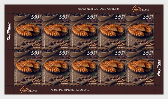 The postage stamp with the nominal value of 380 AMD depicts the Armenian traditional Gata.