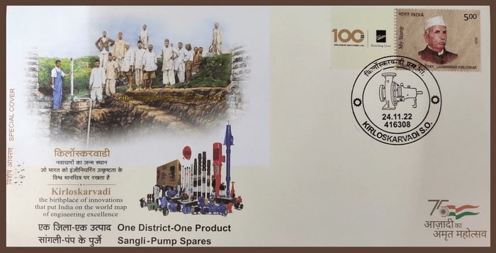 A Special Cover was released on 24 Nov 2022 at Kirloskarvadi on One District -One Product-Sangli-Pump Spares