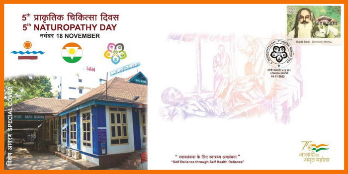 18th November is celebrated as the Naturopathy Day in India since 2018. It was on this day that Mahatma Gandhi became a life member of Nature Cure Trust Foundation and signed the deed. A Special Cover was issued on 5th Naturopathy Day at Loni Kalbhor , Pune to mark the occasion.