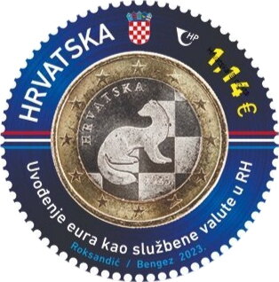 Croatia issued a miniature sheet on 25 Jan 2023 with a round stamp of 1.14 euro featuring three coin designs.